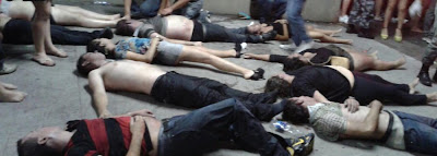 do BOE da Brigada Militar. O número total de vítimas ainda é desconhecido e há centenas de feridos sendo atendidos nos hospitais da cidade. A polícia e o Corpo de Bombeiros ainda trabalham no local, checando as circunstâncias do fogo e retirando corpos da área.